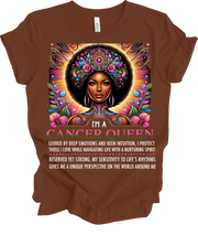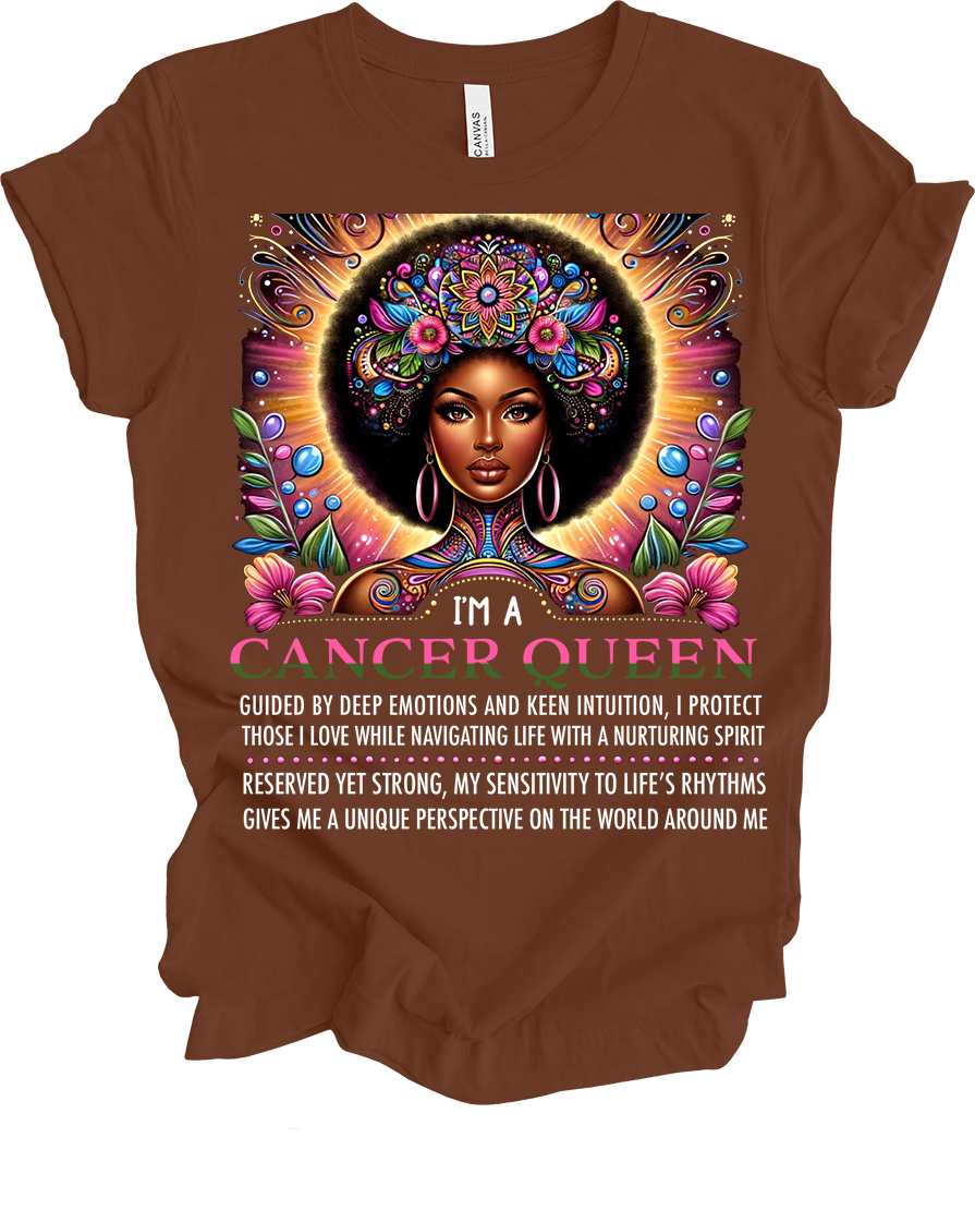 The perfect shirt for the Cancer queen who navigates life with deep emotion and powerful intuition. Made from premium Bella Canvas, it's crafted from 100% Airlume combed and ring-spun cotton for that perfect blend of softness and durability. Unisex fit. Printed and shipped from Charleston, SC. Color: Chestnut brown.